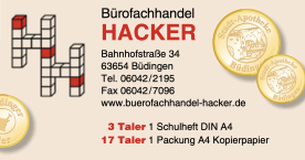 Sammeln Sie den Büdinger Taler! Profitieren Sie bei jedem Einkauf bzw. bei jeder Serviceleistung und sammeln Sie wertvolle Taler.